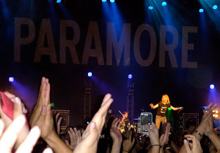 once we got in, the both of us separated as i reunited with my sis and her friends. the crowd was ridiculous, in a bad way. pushing when they dont have to. anyway i find that the opening band Monochrome, was not too bad; although it seemed like many people are against them. well moving on, after Monochrome's set, the sound check for Paramore took like, what, close to 30 mins? my sis' friend Mon, and the rest of them decidedto head out to the back, like out of the crowd where there were space so we all can jump and dance around to. sis and i stuck around in the crowd for a bit, thinking we'd make a move behind the crowd after the first song. but my sis gave that idea up so the two of us headed out and boy, i never regretted that decision still. the view was awesome--though we weren't close to the band--and we definitely did get our own private space. i mean, if we were still in the crowd, we were actually at the quarter back. couldn't see the band AT ALL i swear. so eventhough we were out of the crowd, we could at least see the band and had the helluva fun time, ever. and hence i'd like to take this opportunity to thank my dearest sister Huda for giving me the Paramore tix as my 22nd birthday present! :D